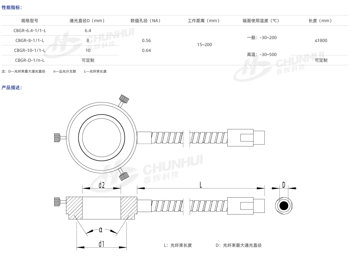 多種芯徑、數(shù)值孔徑可供選擇;
